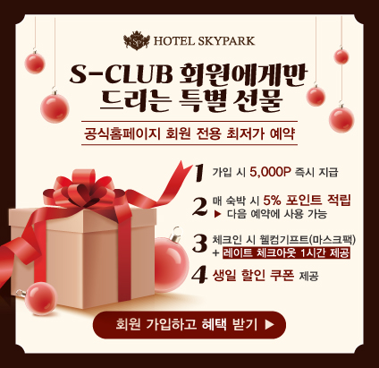 호텔 스카이파크는 언제나 고객 여러분께 특별한 경험, 최고의 휴식과 아름다운 추억을 제공하도록 최선을 다하고 있습니다.
